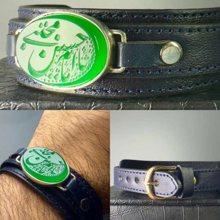 عقیق سبز یا امام حسن مجتبی دستبند چرم طبیعی