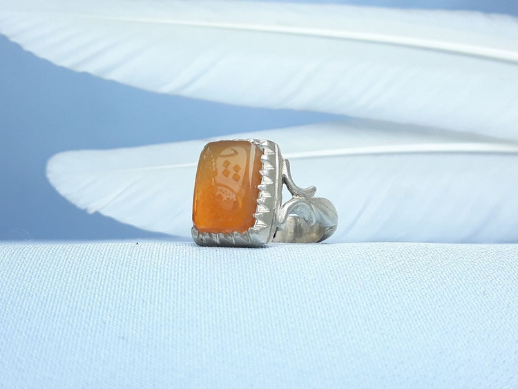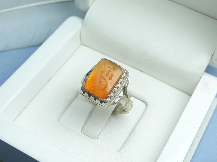 عقیق یمنی پرتقالی خطی