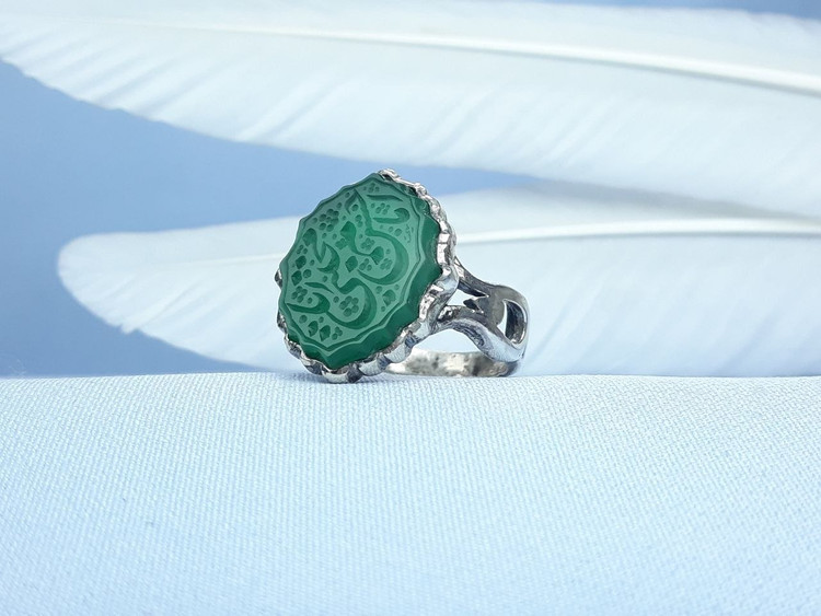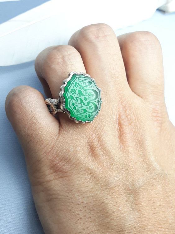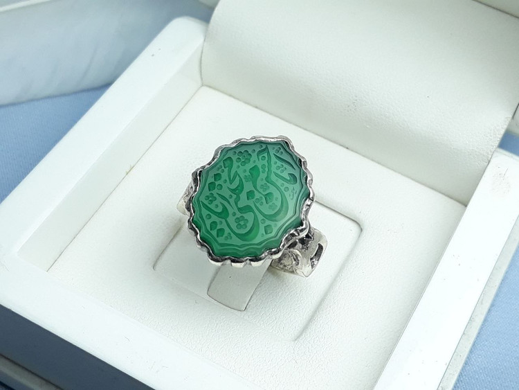 انگشتر مردانه عقیق سبز ذکر یا امام حسن مجتبی