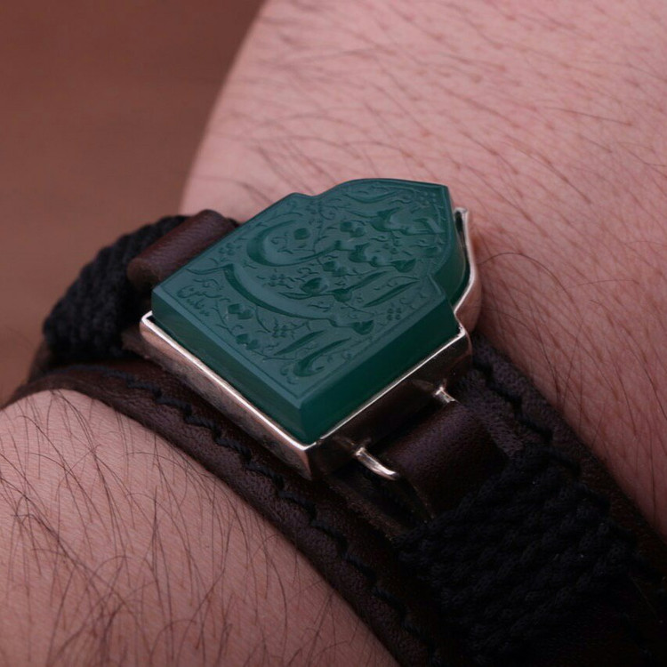 دستبند چرم گاوی طبیعی عقیق (یا امیرالمومنین حیدر)