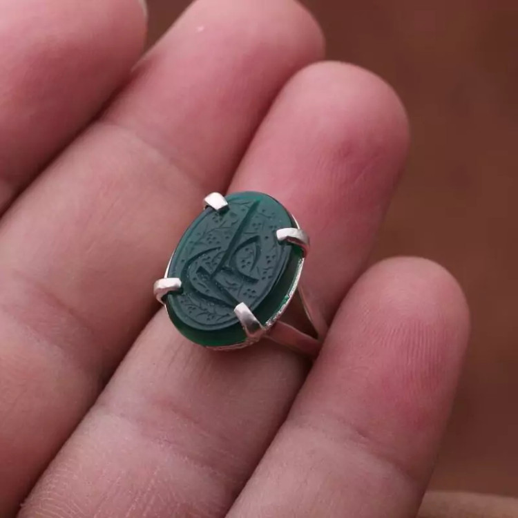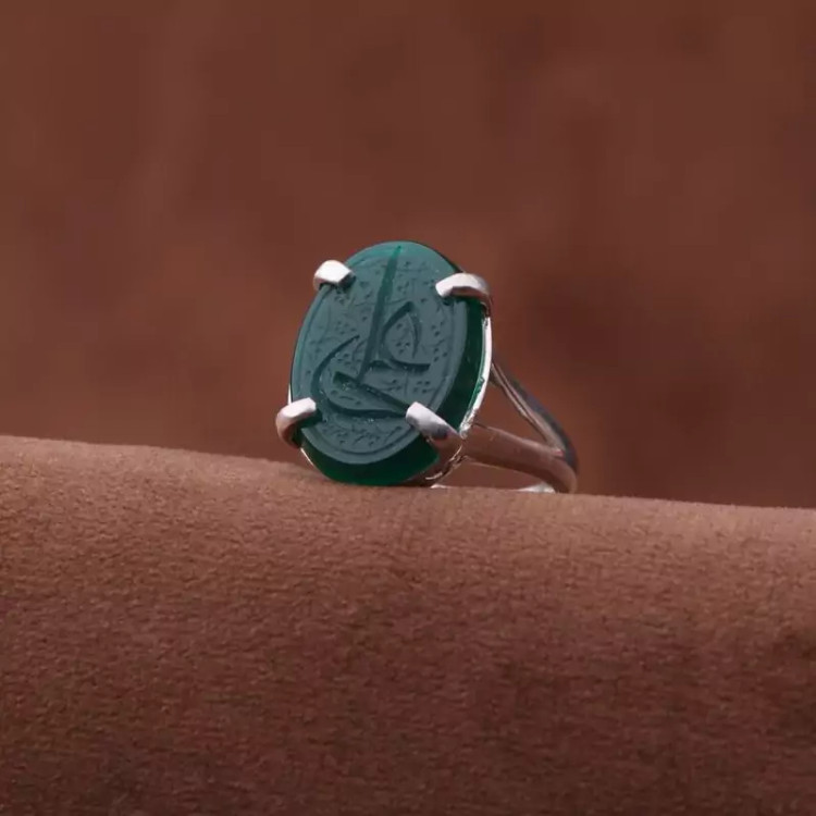 انگشتر عقیق سبز نقش علی معلی اصل ( انگشتر زنانه )