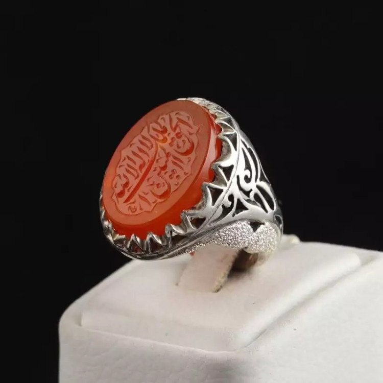 انگشتر نقره مردانه عقیق یمنی نقش لااله الا الله امضا استاد حمد اصل