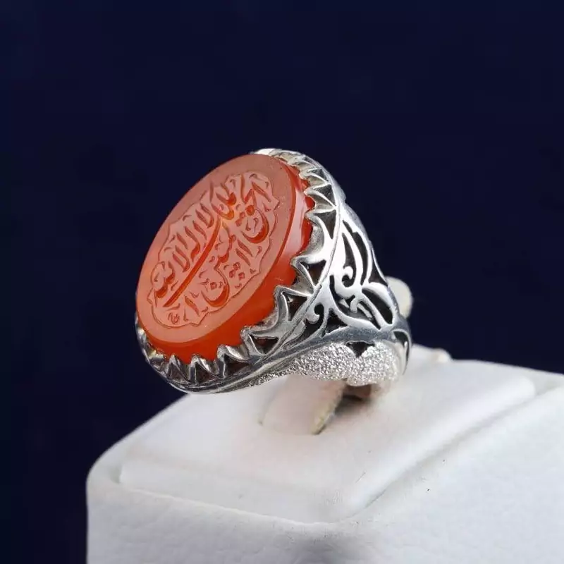انگشتر نقره مردانه عقیق یمنی نقش لااله الا الله امضا استاد حمد اصل