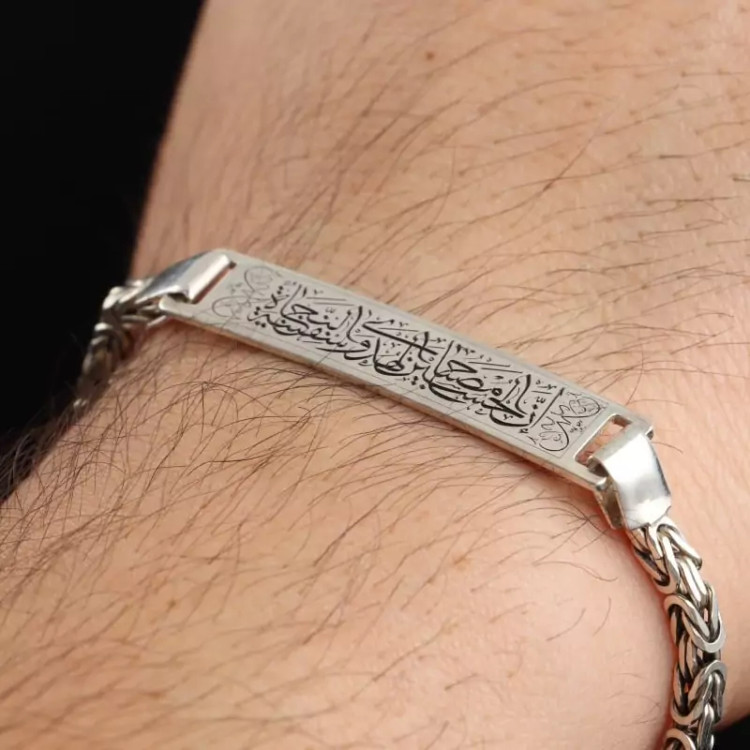 دستبند نقره مردانه کرال خطی نقش اِنَّ الْحُسین مِصباحُ الْهُدی وَ سَفینَهُ الْنِّجاه