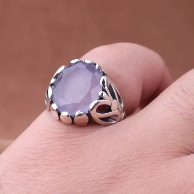 انگشتر عقیق کبود یمنی تراش الماسی اصل ( انگشتر مردانه عقیق یمنی )