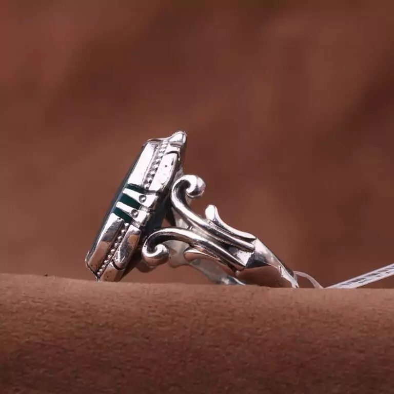 انگشتر عقیق سبز نقش چهار قل رکاب طراحی خاص مردانه اصل ( انگشتر مردانه )