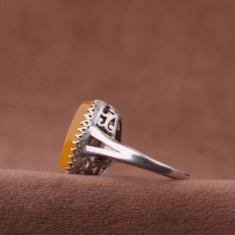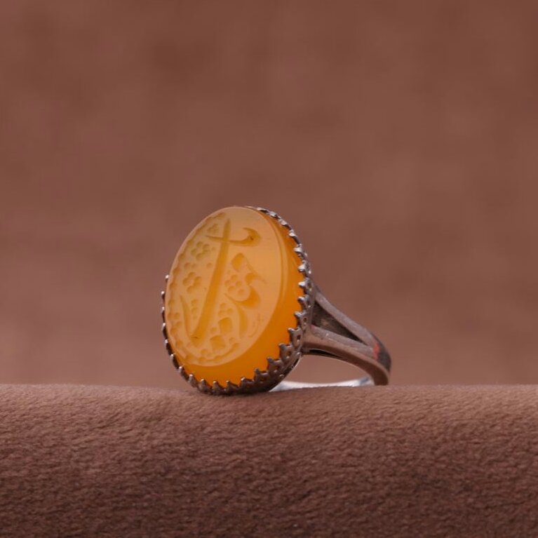 انگشتر عقیق زرد زنانه نقش یا مهدی اصل ( انگشتر زنانه )