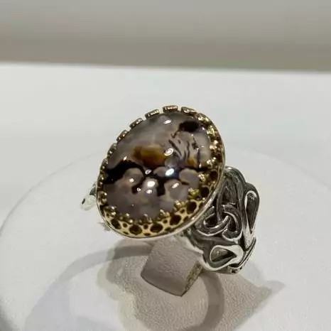 رکاب انگشتر نقره 925 عیار می باشد و نگین انگشتر عقیق شجر اصلو طبیعی است.