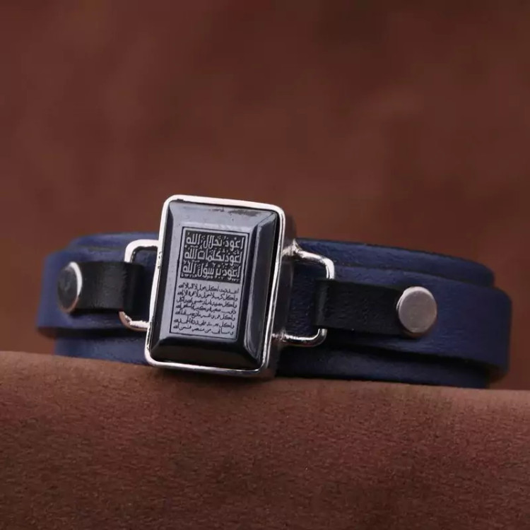 دستبند چرم طبیعی حدید نقش هفت جلاله اصل ( دستبند مردانه )