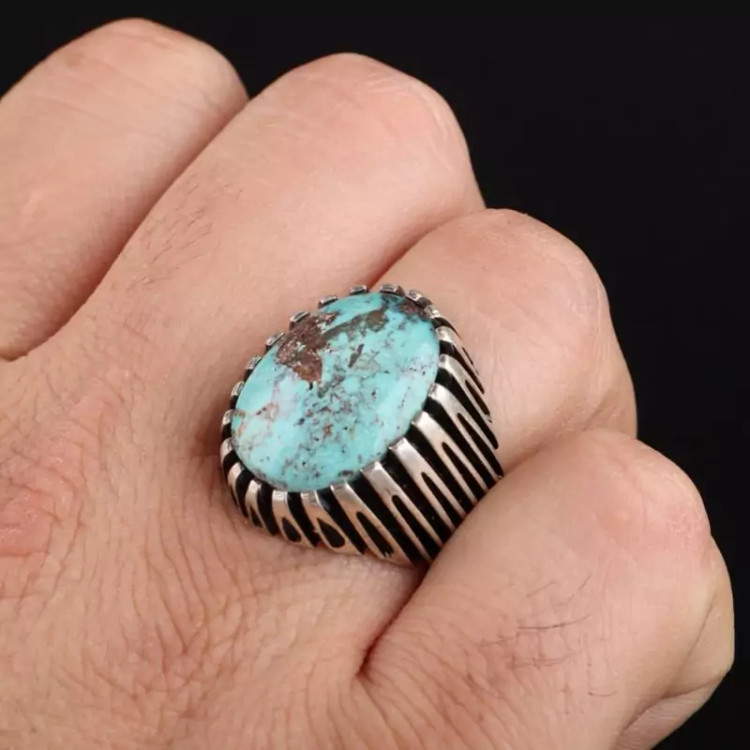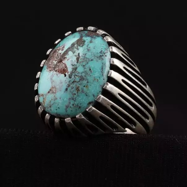 انگشتر نقره مردانه فیروزه نیشابوری طراحی زیبای اصل ( انگشتر مردانه )