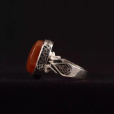 انگشتر نقره مردانه دستساز عقیق یمنی اصل قلمزنی نادعلی دارای حرز امام جواد (ع)