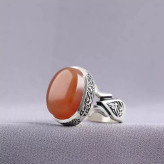 نگین انگشتر عقیق پرتقالی یمنی اصل است.