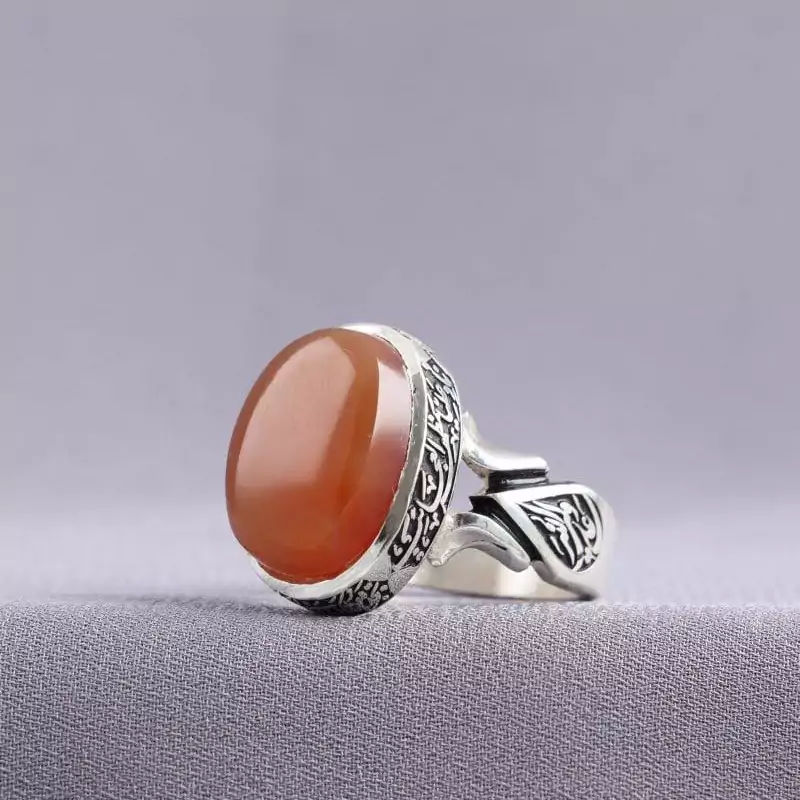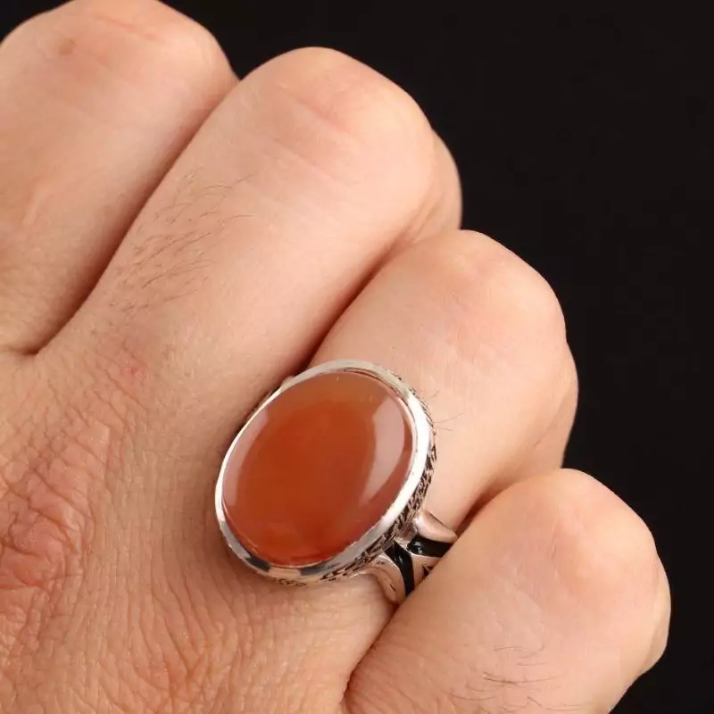 نگین انگشتر عقیق پرتقالی یمنی اصل است.