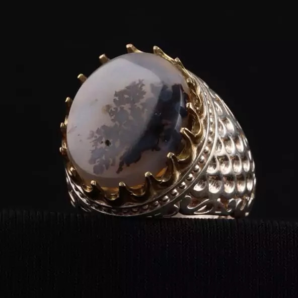 انگشتر شجر معدنی رگه طبیعی رکاب تاج برنجی اصل ( انگشتر نقره مردانه )