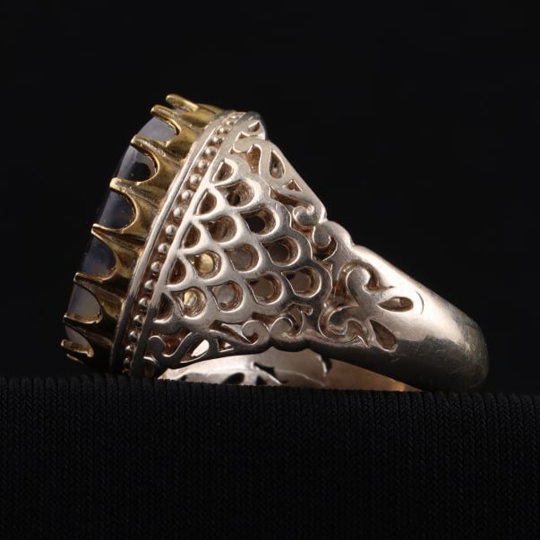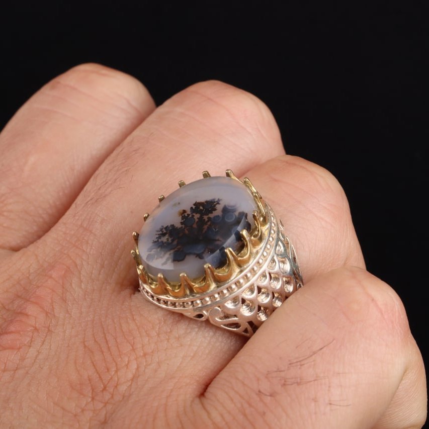 انگشتر شجر معدنی رگه طبیعی رکاب تاج برنجی اصل ( انگشتر نقره مردانه )